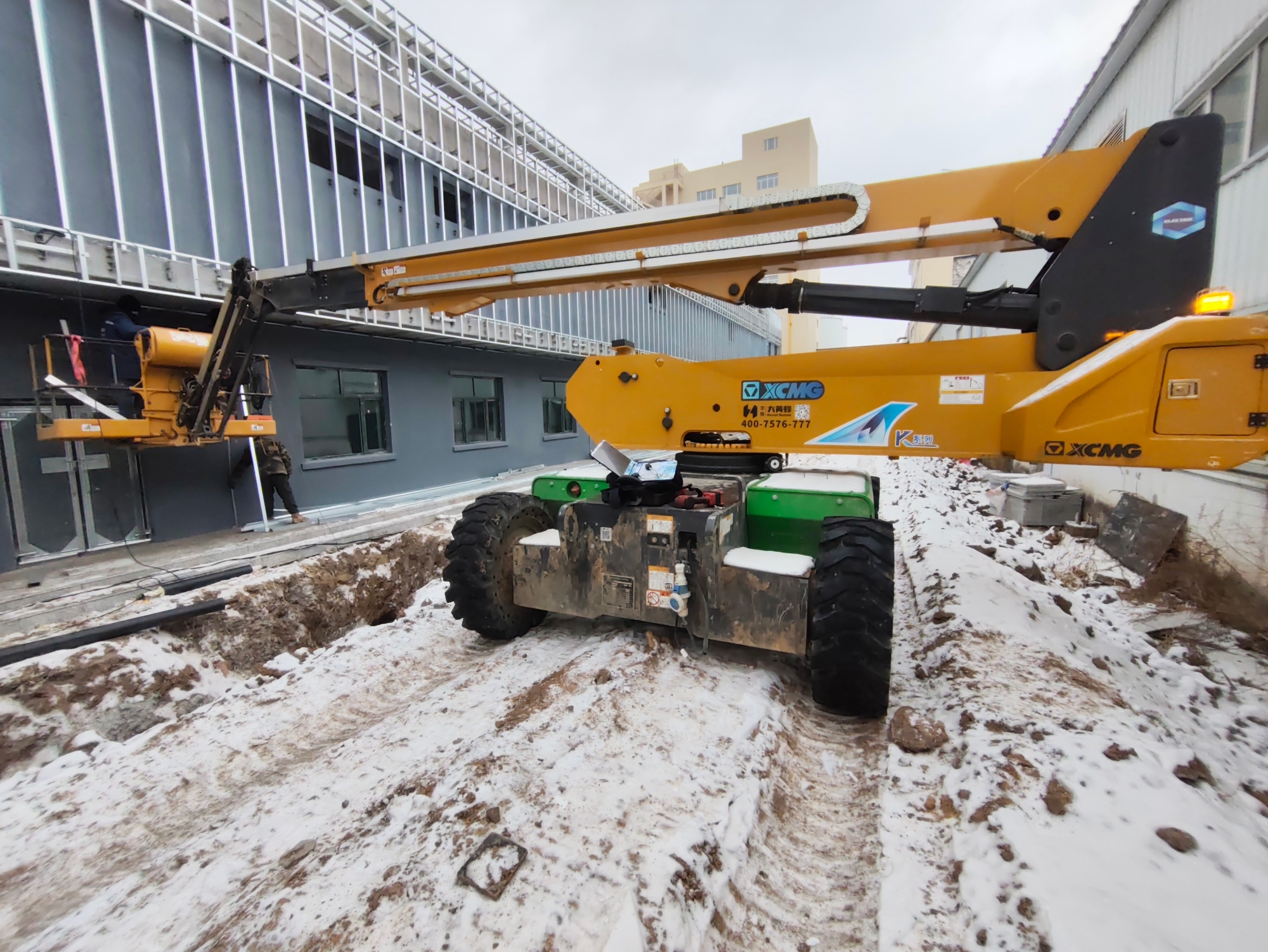 在黑龍江哈爾濱北大荒綠源冷鏈管理中心建設(shè)現(xiàn)場(chǎng),冬日的冰雪覆蓋著施工場(chǎng)地,徐工高空作業(yè)平臺(tái)卻依舊高效運(yùn)轉(zhuǎn),成為項(xiàng)目外立面施工的核心設(shè)備。