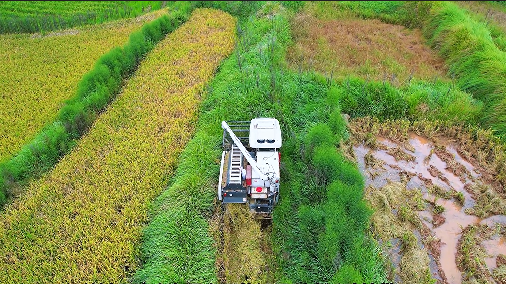 這車特別適合我們丘陵地區(qū),爬坡上坎完全不在話下,因?yàn)檫@臺(tái)機(jī)器重心設(shè)計(jì)合理,離地間隙也高,防陷能力強(qiáng),爛泥田通過(guò)性也很好。割臺(tái)設(shè)計(jì)得短,下坡也不容易吃土,用著很踏實(shí)。