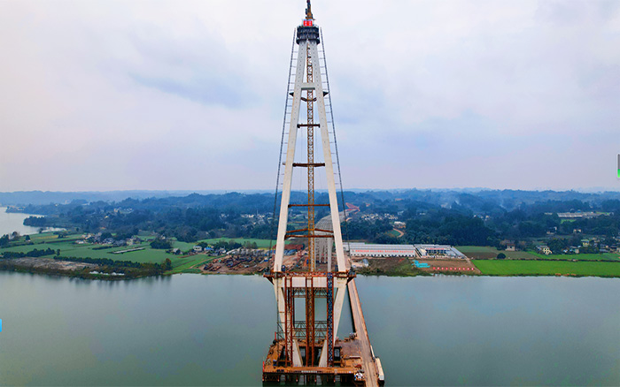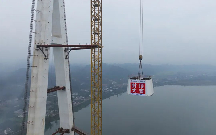 湖岷江特大橋主塔采用六邊形箱型截面,結(jié)構(gòu)復(fù)雜,高空作業(yè)安全風(fēng)險(xiǎn)大,XGT2850-120S為大橋模塊化拼裝提供了關(guān)鍵支撐。