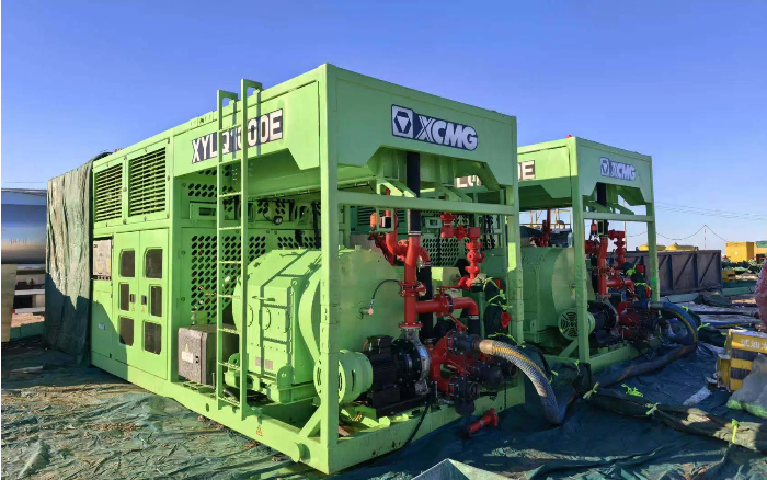 該項目涉及兩口井,井深分別達4000m和2800m,要求設(shè)備24小時連續(xù)運轉(zhuǎn),穩(wěn)定提供排量近500L/min、壓力大于30MPa的沖井液。面對零下30℃的極寒工況,徐工設(shè)備依然穩(wěn)定出勤、持續(xù)高效運行。