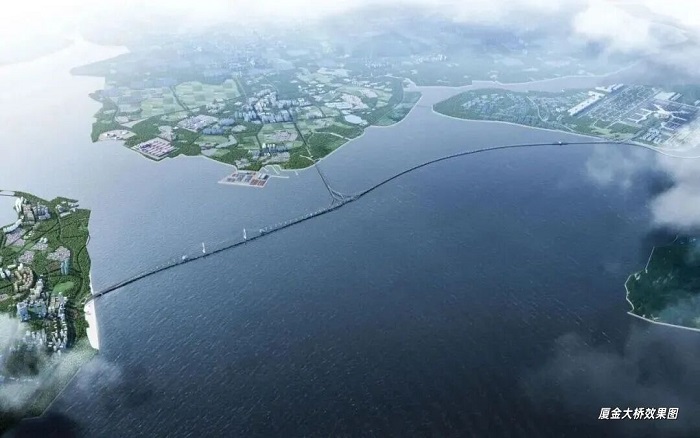 廈金大橋全長1948米,主跨達(dá)928米,是福建省內(nèi)最大跨徑的橋梁,也是全省首座全離岸式海中懸索橋,項(xiàng)目為兩岸融合發(fā)展鋪設(shè)一條堅(jiān)實(shí)的海上通途。