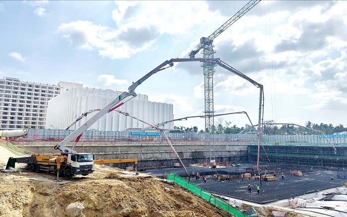 瓊浪翻涌,向海而興。在海南自貿(mào)港建設(shè)的前沿?zé)嵬痢齺啠?臺(tái)徐工大米數(shù)泵車臂架而立,憑借超強(qiáng)泵送力、精準(zhǔn)布料與極致穩(wěn)定性,持續(xù)攻堅(jiān)、高效作業(yè),將10000方C40P8高標(biāo)號(hào)混凝土精準(zhǔn)澆筑入項(xiàng)目核心區(qū),為海南建設(shè)進(jìn)程貢獻(xiàn)可靠的“徐工力量”。