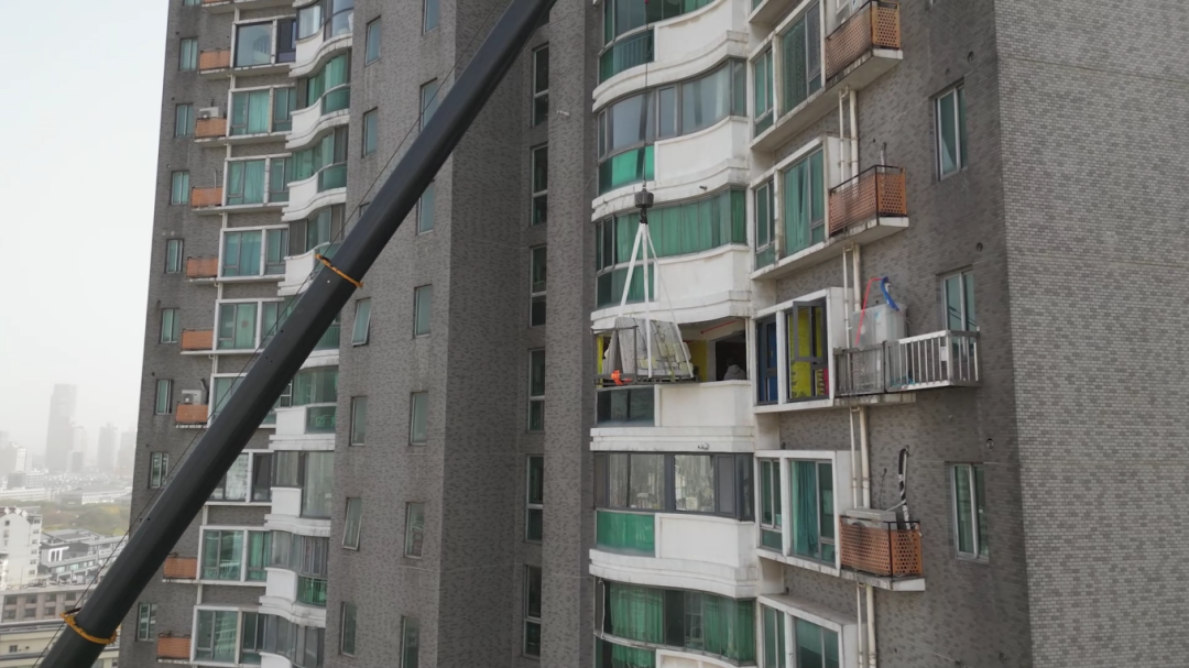 客戶高層住宅裝修,需要把一整摞室內板材送到72米高的窗口,吊裝跨度達到39米,起重機需要在半空穩(wěn)穩(wěn)停住,等室內工人將一張張板材從窗口搬進去——這對設備的穩(wěn)定性提出了極高要求。